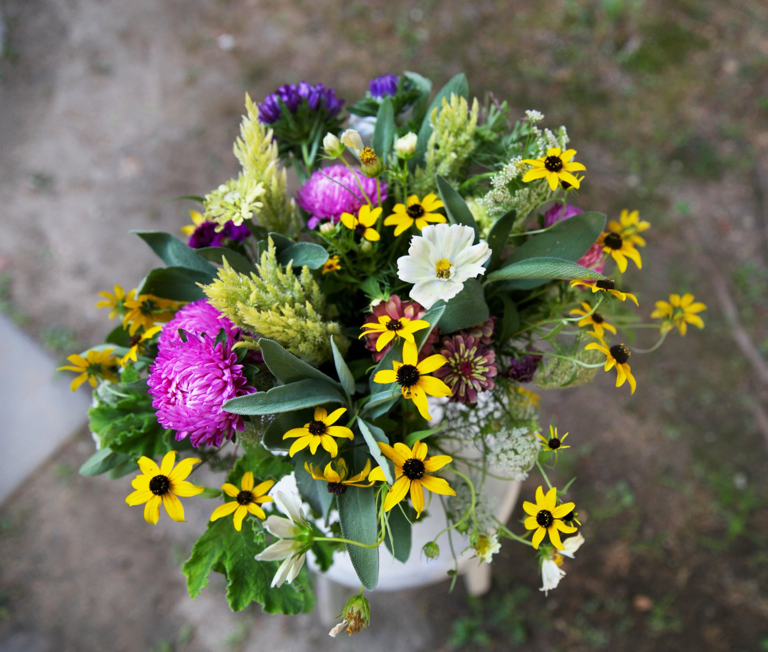 Week 11... that means only 4 more to go! Wow, this summer has been sooooooooo hot but it now seems to have flown by. Week 11's photos were not taken by me; rather by the very capable duo, Lauren and Marta (our summer intern.) I was busy running off to Richmond, VA. This bouquet smelled SO good! See those sage leaves shooting out? Not only do they look great, they smelled great too.